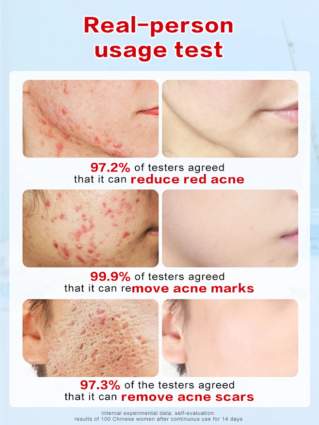 Struggling with red acne, stubborn marks, or pesky scars? This product’s real - person tests don’t lie: 97.2% saw less red acne, 99.9% got rid of acne marks, and 97.3% faded acne scars. For Americans tired of acne woes, this is your ticket to clear, confident skin. Don’t wait—grab it and say hello to your best complexion yet!